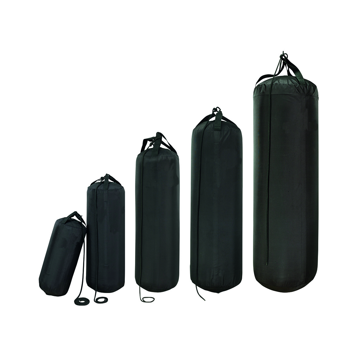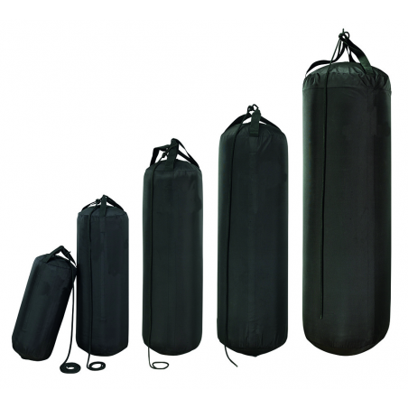 Fabbricato in poliestere con rivestimento in poliuretano molto resistente alle abrasioni,dotato di camera d'aria elettrosaldata in pvc e rinforzato da tre cinghie antistrappo sulla sommità superiore. Utilizzabile orizzontalmente o verticalmente. Fornito con una cima diametro mm. 10 mt. 2. Colore nero