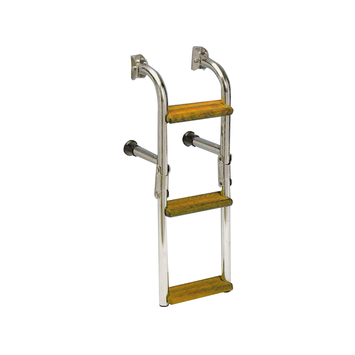 Scaletta pieghevole, tubo in acciaio inox diametro mm. 25 con gradini in legno marino