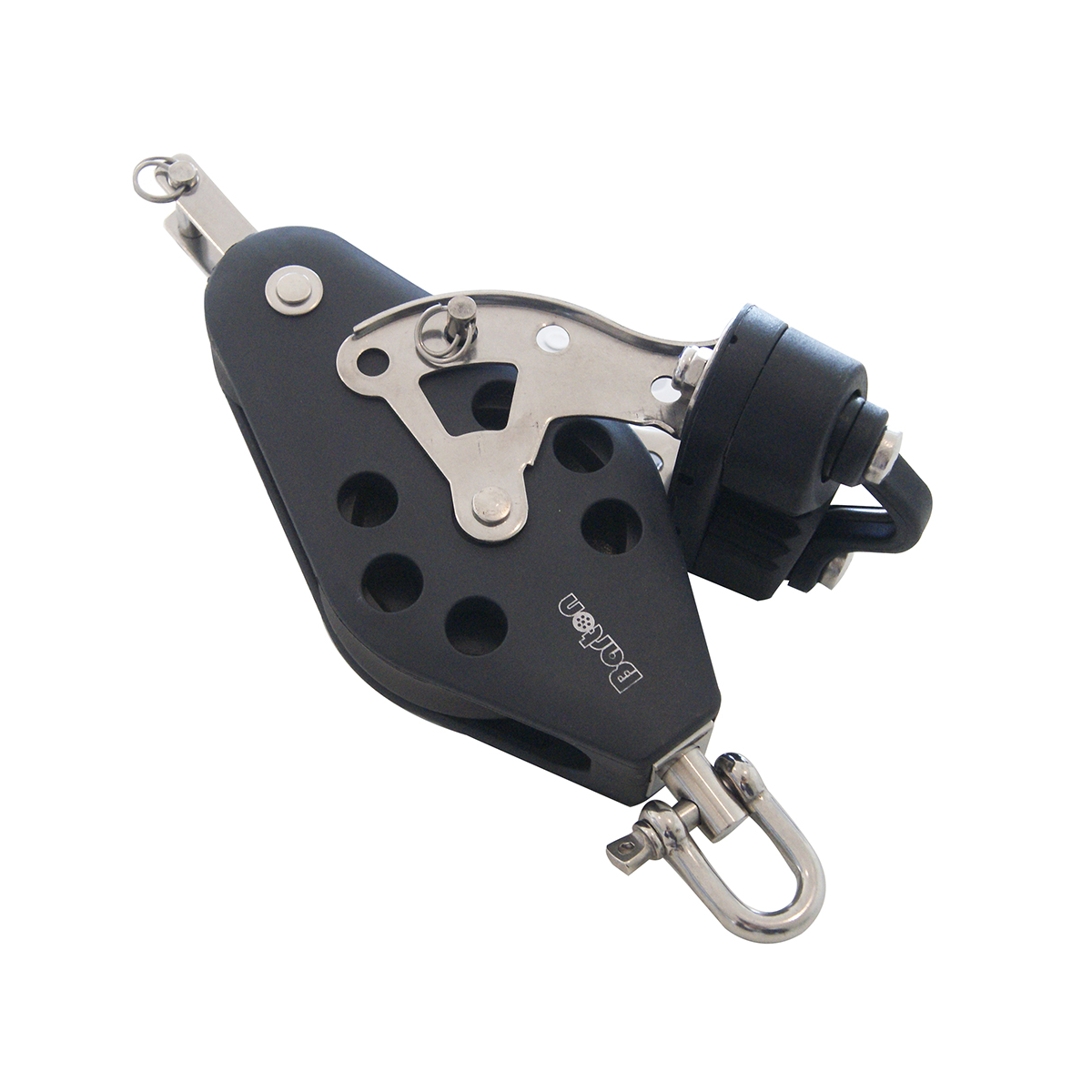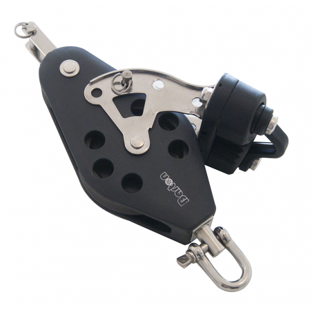 Bozzello a violino singolo girevole con arricavo e cam in plastica, Ø cima mm. 10, max carico di lavoro kg. 385 carico di rottura kg. 770, dimensioni puleggia mm.45 lunghezza mm.178