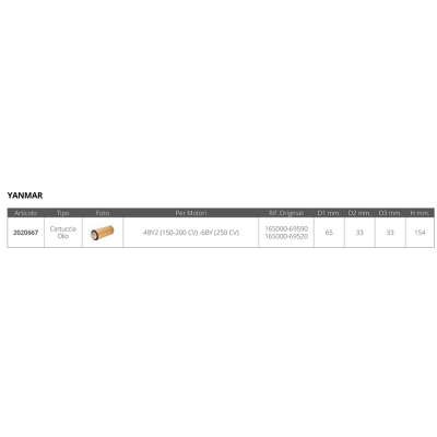 Cartuccia olio dim. diametro est. mm. 65 diametro, diametro foro mm. 33 altezza mm. 154 per motori 4by2-6by
