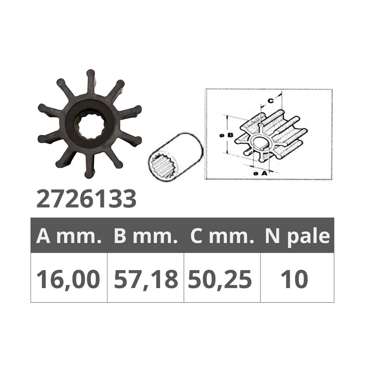 Dim. diametro int. mm. 14, 29 diametro est. mm. 57, 18 spessore mm. 50, 25, nr. 10 pale.