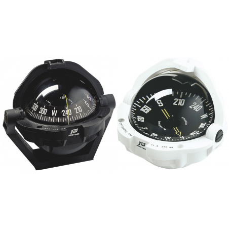 Bussola Offshore 135 Ø apparente mm. 130. Rosa conica, con graduazione ogni 5°, per barche a motore oltre mt 10, illuminazione di serie 12 V. Calotta di protezione retrattile in tre parti scorrevoli. Installazione ad incasso orizzontale o su staffa con l’apposito kit.