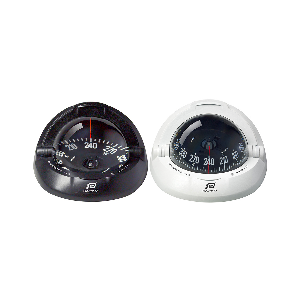 Bussola Offshore 115 conforme SOLAS MED 96/98 per barche da 8 a 12 metri, rosa conica piatta con gradazione 5 gradi. Montaggio ad incasso su piano orizzontale con calotta di protezione telescopica in tre parti scorrevoli. Dimensioni mm. 159 x 159