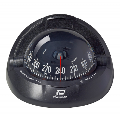 Bussola Offshore 115 Ø apparente mm. 101. Rosa conica o piatta, con graduazione ogni 5°, per barche a motore da mt 8 a 12, illuminazione di serie a 12V. Calotta di protezione