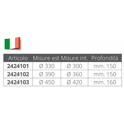 LAVELLO INOX SEMISFERA COMPLETO DI PILETTA E TAPPO MIS.ESTERNE MM.330 INTERNE MM.300 PROFONDITA' MM.150