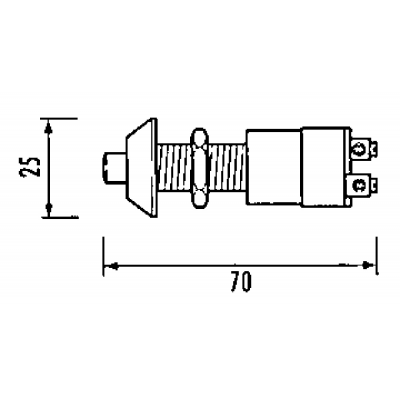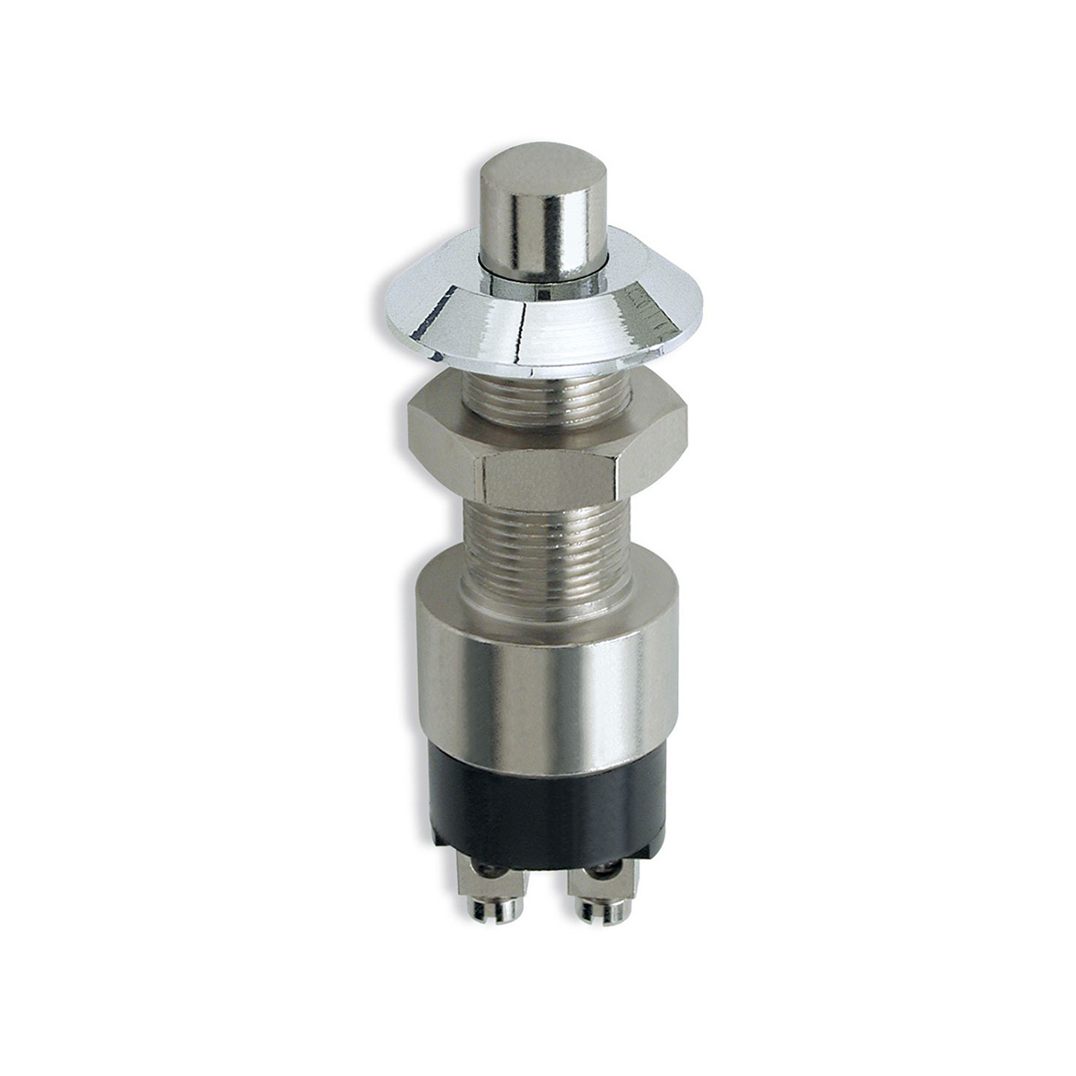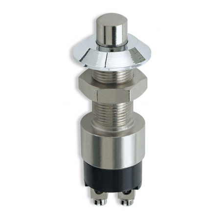Pulsante 30A in ottone cromato con ghiera frontale. Foro diametro mm.14.