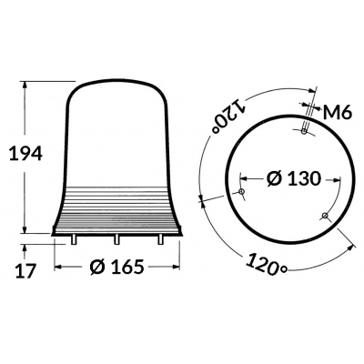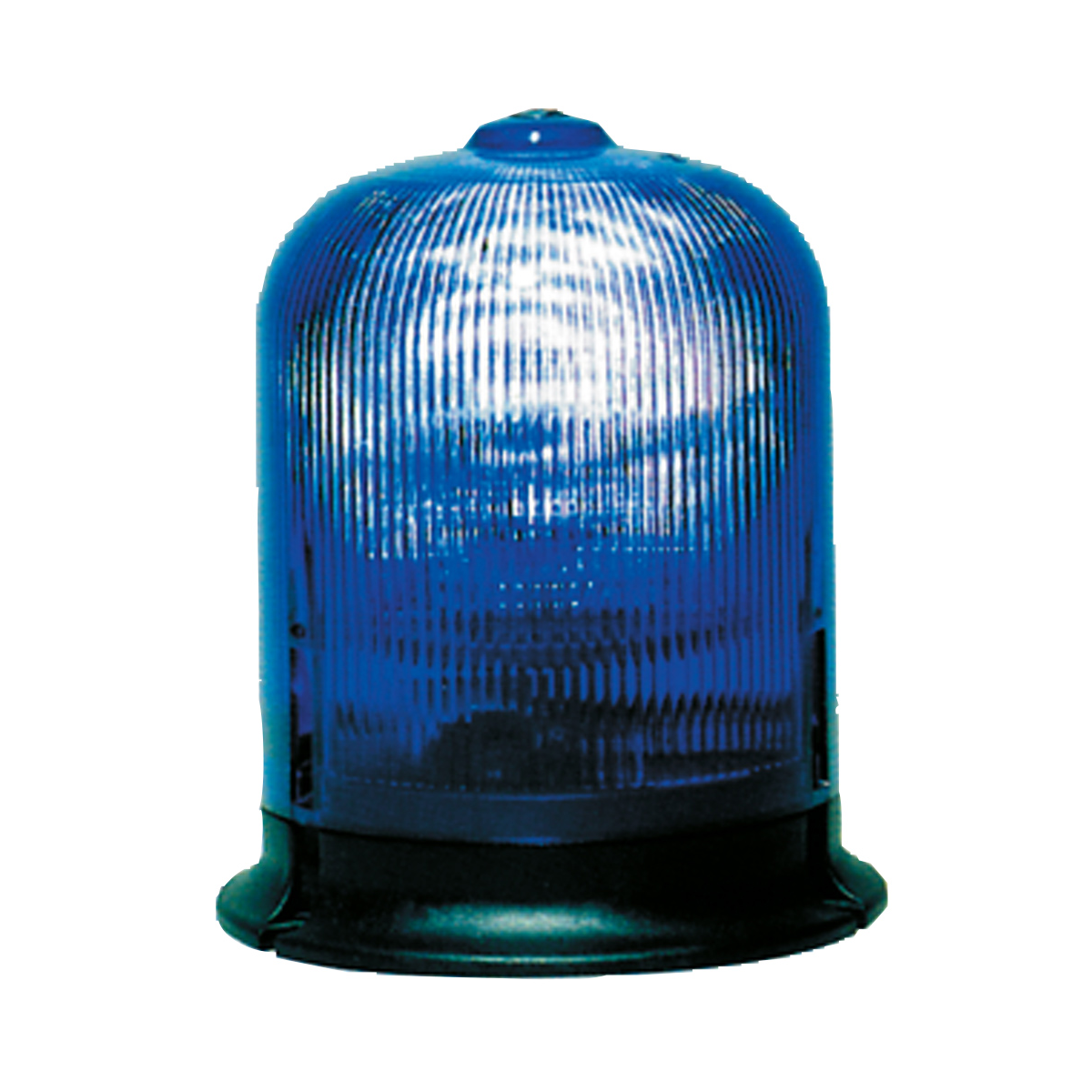Luce rotante per veicoli prioritari (polizia, pompieri, ambulanza, ecc.) colore blu. Base in polipropilene rinforzato fibra di vetro, cupola con fissaggio mediante viti, trasmissione a ingranaggio a vite senza fine, rotazione su bronzina sinterizzata, specchio in acciaio metallizzato, filtro antiradio disturbo secondo Dir. 95/54/CE. Rotazione 160+- 30 giri/min. Fornito senza lampadina (H1 - 55W). Alimentazione 12/24 V. Peso kg. 0,500