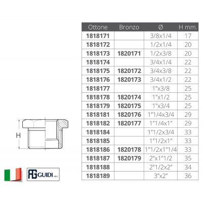 Manicotto riduzione in bronzo, Nipless doppio di riduzione maschio – femmina da 1/2-3/8.