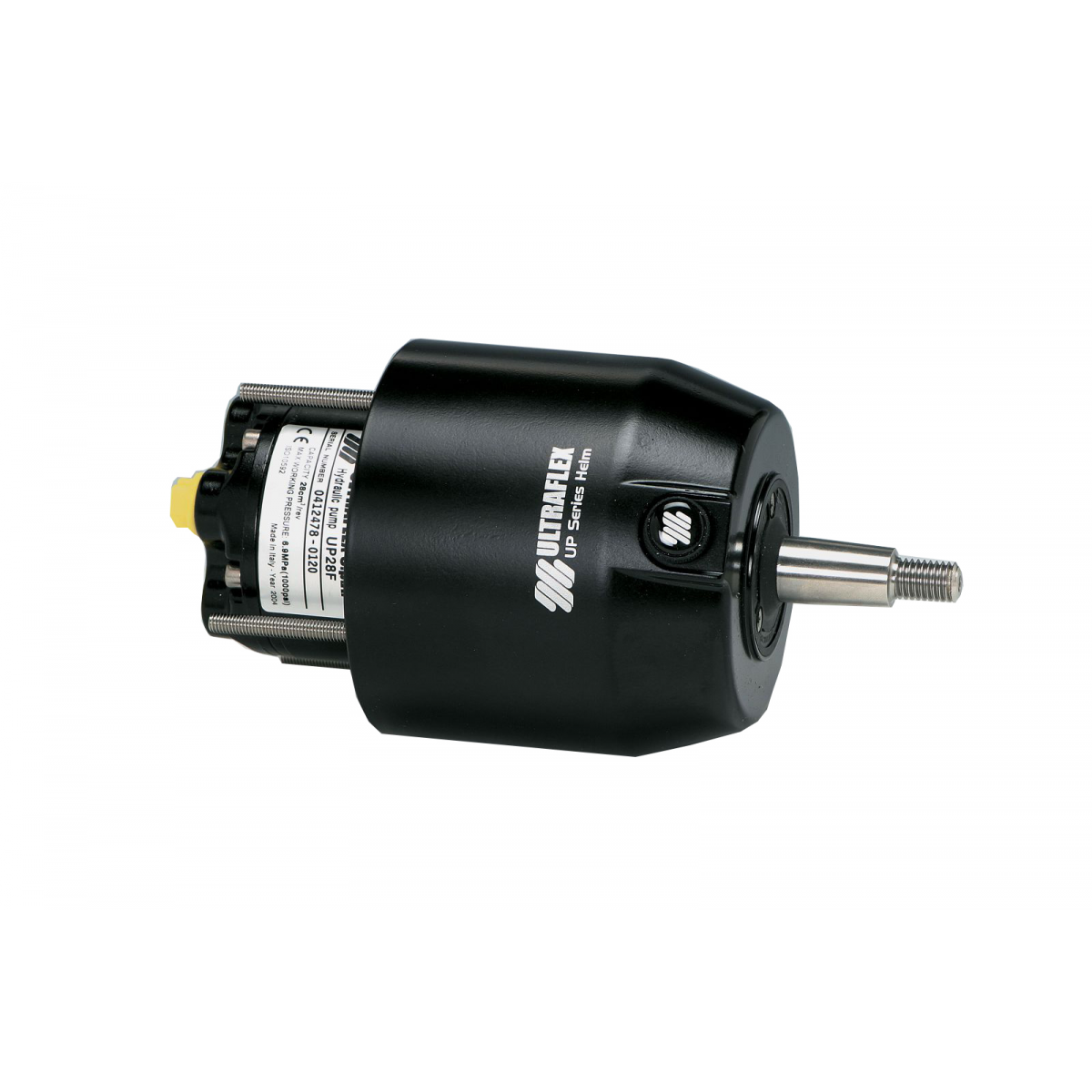 Pompa montaggio frontale. Struttura compatta, sistema pistoni assiali, valvola di non ritorno che impedisce la reversibilità, valvola di protezione alle sovrapressioni, alberino conico da 3/4 in acciaio inox, rotore in ghisa per una maggiore durata, riempimento olio frontale, predisposte per raccorderia da 1/4 NPT, per tubo da 3/8 complete di raccordi a gomito. Possibilità di montaqggio a semincasso.