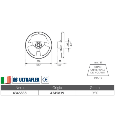 Volante a 3 razze in materiale termoplastico antiurto e rivestimento morbido. diametro mm. 380