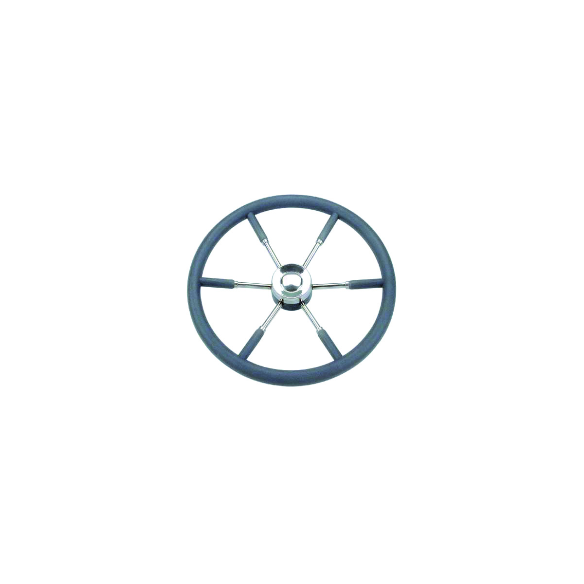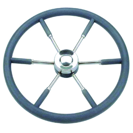 Volante a 6 razze con impugnatura e razze in acciaio inox rivestite in poliuretano morbido, colore grigio.0